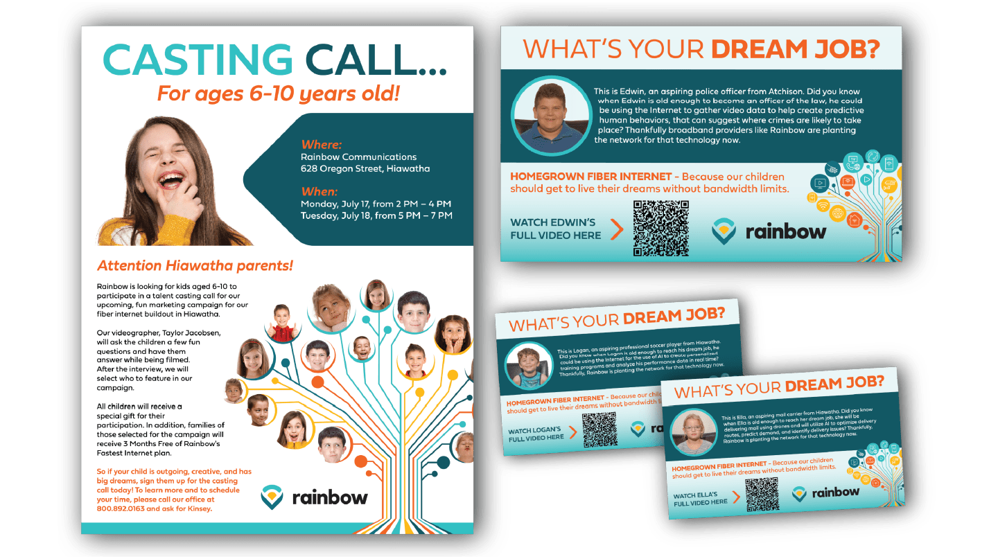 Rainbow wanted to feature the “local” aspect of their company and the fact that they have been in the area for decades offering service. It was important to emphasize the value of trust to their customers. With this idea in mind, they came up with the theme of “Homegrown Fiber Connections”.”